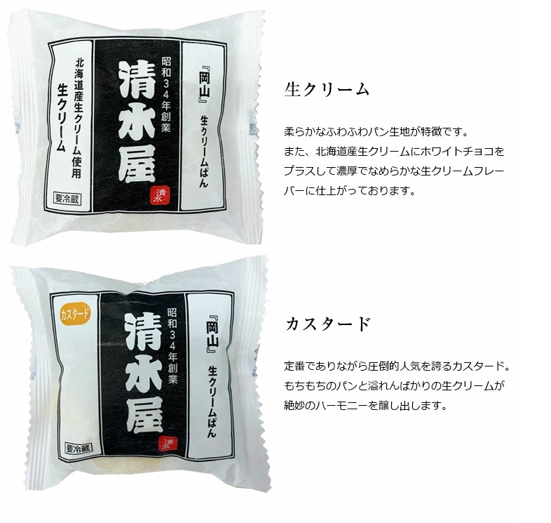 北海道産生クリームを使った2種類のクリームを柔らかな生地で包んだスイーツパン。
